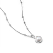 Said to represent 'new beginnings' pearls are a meaningful addition to any stack. Made from 100% recycled silver, featuring a round iridescent pearl pendant on an adjustable bobble chain. A timeless necklace that looks just as good solo as it does layered.