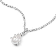 A symbol of wisdom and luck, this egg shaped pearl charm features ten mini pearls scattered across it. Paired with a fine box link chain and made in 100% recycled silver.