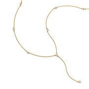 Effortless elegance made easy. This timeless lariat necklace features eight white sapphires stationed on a 14ct solid gold chain. Whether it's a LBD moment or a jeans and tee day, instantly lift your look with the fine jewellery collection.
