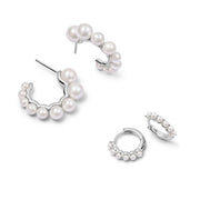 These pearl hoops make for the perfect part ready stack. Featuring a chunky pearl hoop and mini pearl huggie both made with 100% recycled sterling silver. A big impact stack, minimal effort.