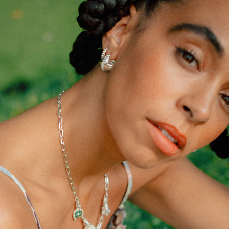 Channel summer vibes year round with this ear stack; featuring mini pearl huggies paired with a beaded turquoise and fine pearl hoop earrings. Made in recycled silver, we can't get enough of this combo.