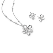 Florals and pearls, what more do you need? Featuring a daisy inspired bow design on both the studs and the matching pendant necklace. Made with 100% recycled sterling silver and freshwater pearl details. Add something extra special to your jewellery box.