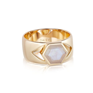 Bold, beautiful and essential. This statement band ring adds a touch of luxury to your everyday style. Set with Pink Opal, which gives that subtle pop of colour you've been looking for. Style solo for a less is more moment or layer with stacking bands for a curated look you'll be wearing on repeat.