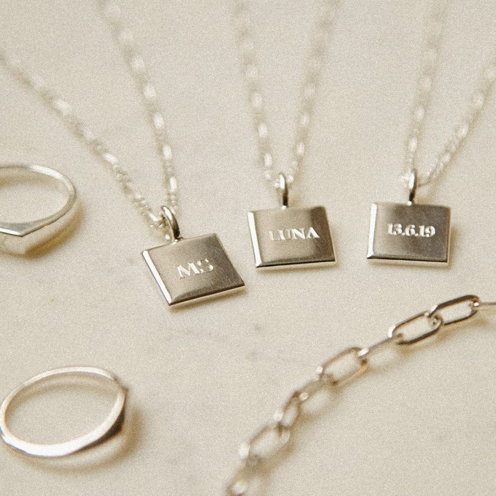 Engravable Square Pendant Necklace Sterling Silver