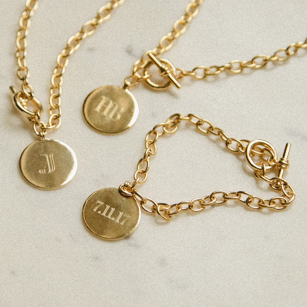 Make a personalised statement with this nostalgic chunky medallion necklace. Complete with a t bar fastening and engravable circular pendant. Whether it's a date, name or initials, this is the perfect piece to give or to get.