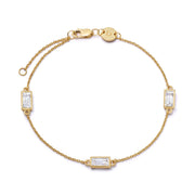 They say three's a crowd but not when it comes to sapphires. Featuring baguette cut white sapphires stationed on a fine 14ct solid gold chain, this bracelet brings something special to any stack.