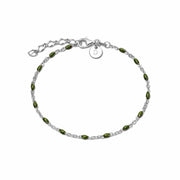You won't be able to resist this one, style with your favourite chain and charm bracelets for layering heaven. Featuring small olive green enamel beads on a fine 100% recycled sterling silver chain and a 1" extender, this is the new stacking piece you've been looking for.