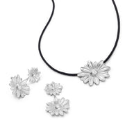 An ode to hazy summer days, this layering set is designed to make an statement with minimal effort. This set includes playful drop earrings and a 70's inspired cord necklace. Both pieces feature vintage inspired daisies with a soft brush finish. Perfect for dressing up, dressing down and everything in between.