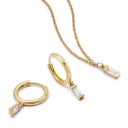 A fine pairing. No matter the occasion this necklace and earring set brings effortless luxury. Made in 14ct solid gold, featuring the Fine Diamond Necklace and the Fine Baguette Diamond Huggie Earrings. Trust us, you won't want to be without this duo.