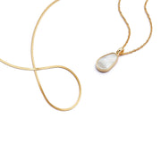 An iridescent touch to an everyday layering set. Both pieces are crafted from 100% recycled sterling silver and 18ct gold plate. This layering set features our bestselling mother of pearl pendant necklace with a classic fine snake chain. Everyday layering (and gifting) made easy.