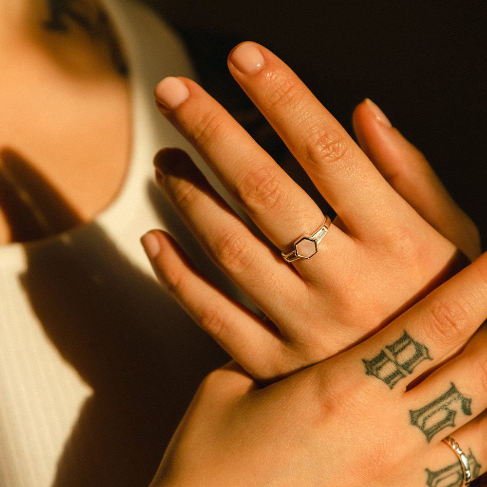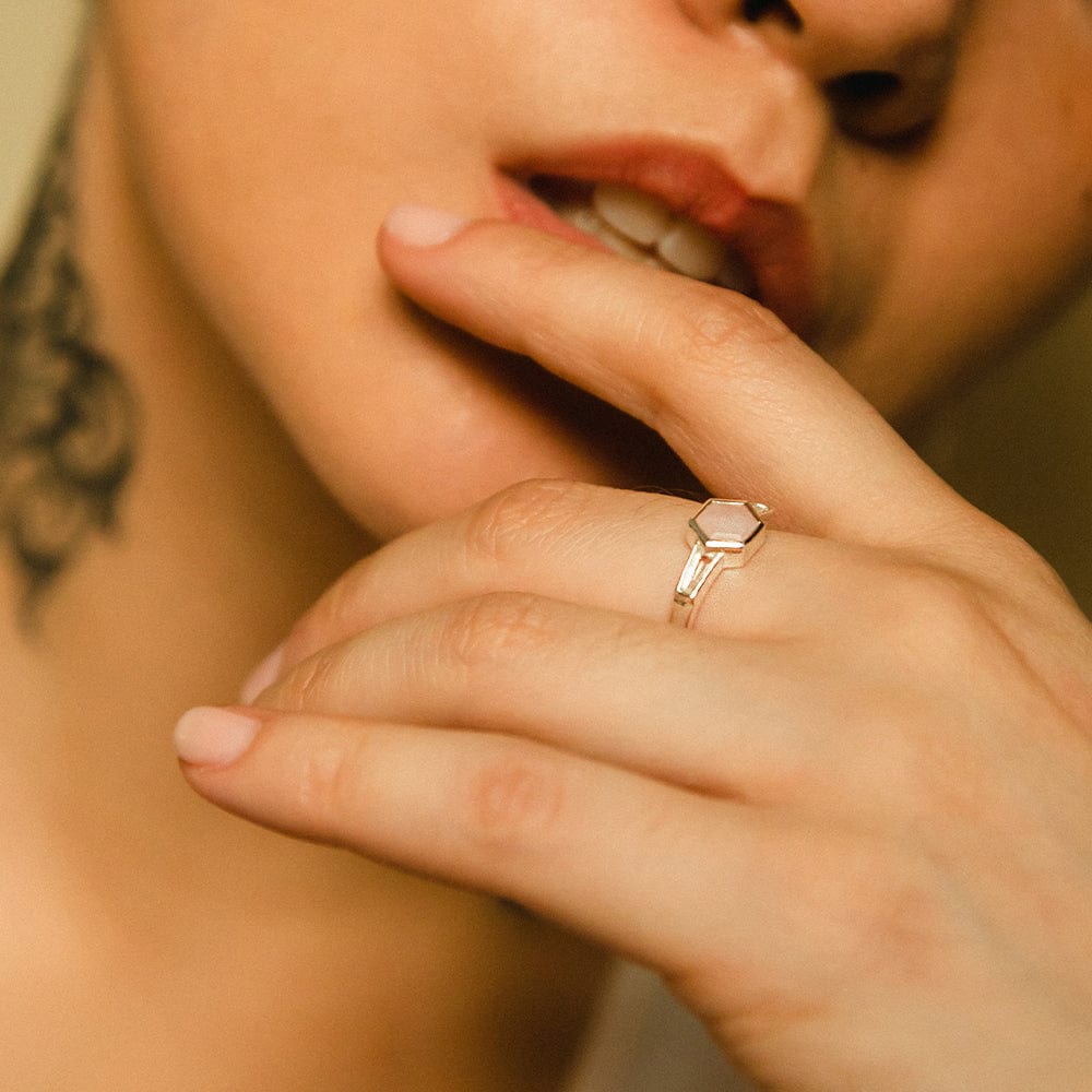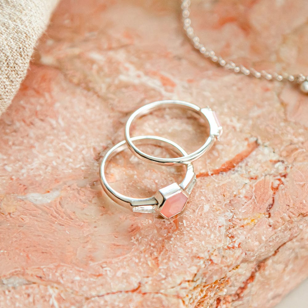 Beloved Pink Opal Hexagon Ring Sterling Silver