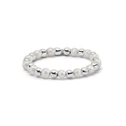 Simple but effective, this loose bead and pearl ring will become your second skin. Made from 100% recycled silver and attached with elastic for a comfortable fit, this easy-to-layer ring looks great stacked high or worn alone.