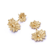 We shouldn't have favourites but... Designed to make an effortless statement with minimal effort, these playful drops feature two vintage-inspired soft brush finished daisies that are plated in 18ct gold. Perfect for dressing up, dressing down and everything in between.