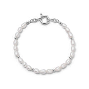 A freshwater pearl chain with 100% recycled sterling silver detailing and a distinctive clasp. The perfect layering bracelet, you really can't go wrong.