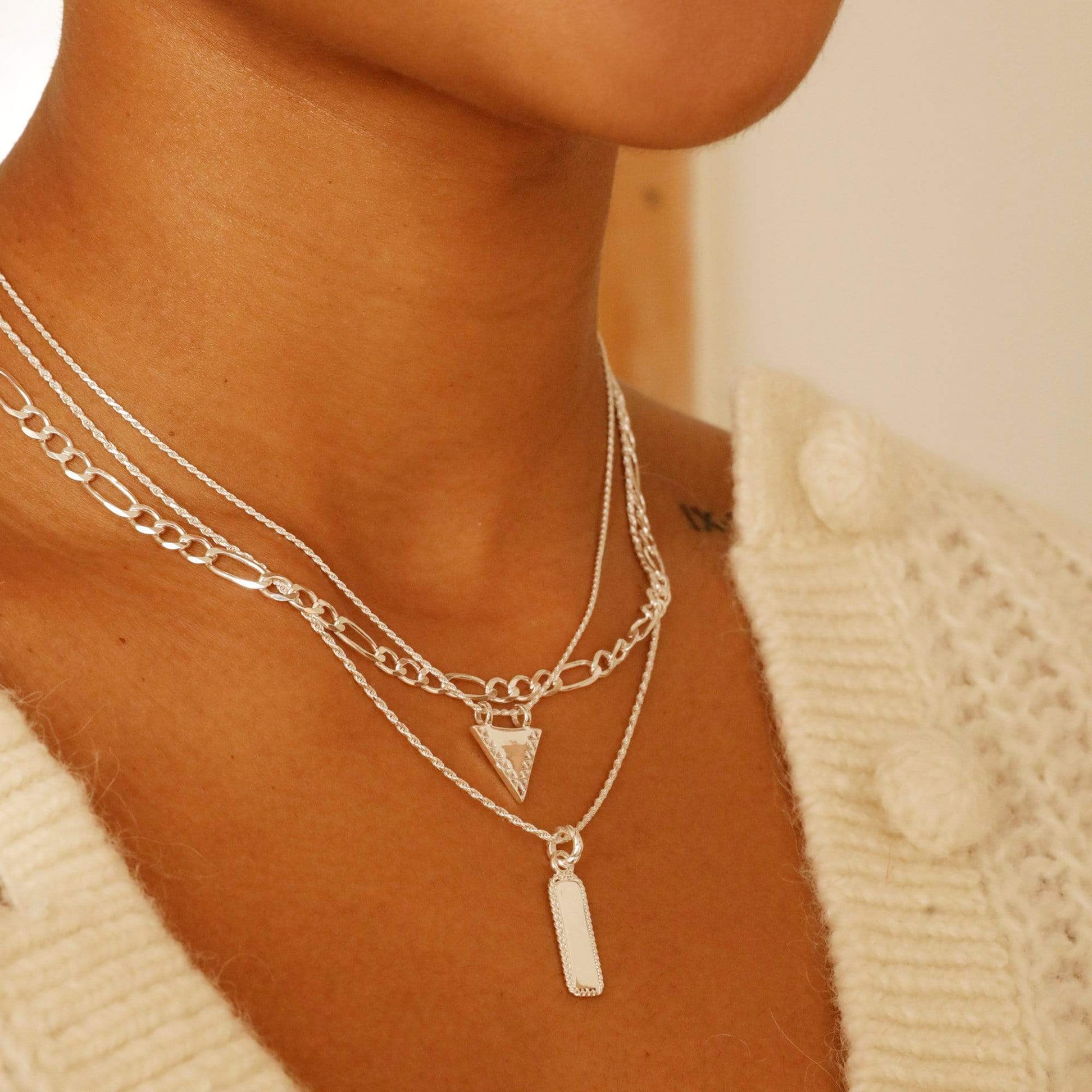 Elevate your everyday styling. Our Artisan Stamped Necklace is a new must-have for effortless accessorising, set on a twisted chain and crafted in sterling silver this piece features a smooth angular pendant with stamped through aztec detailing on the edge. A beautiful symbol of those keepsake trinkets from past travels.
