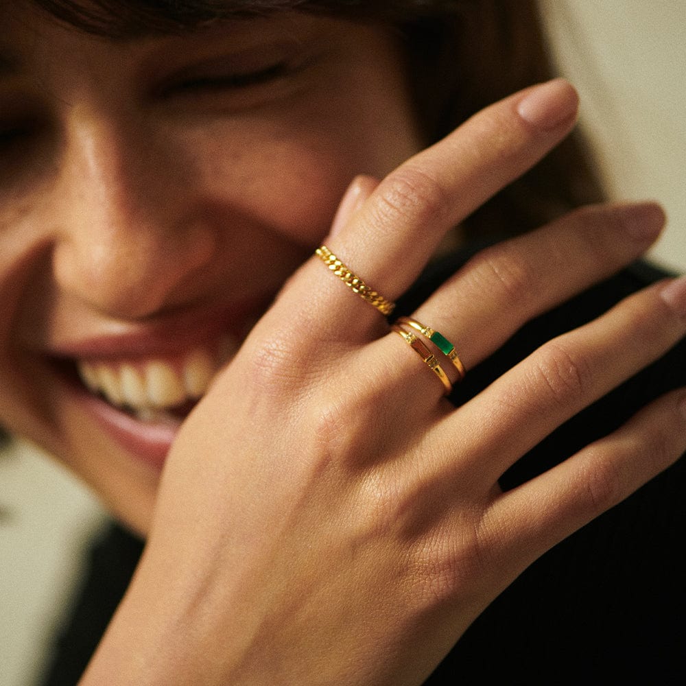 Designed to be layered and loved now and forever. Made in 18ct gold plate and set with a Citrine stone alongside White Topaz. Looking just as good styled solo as they do together with other band rings. Whatever your style, whatever the occasion you can't go wrong with this one. Trust us.
