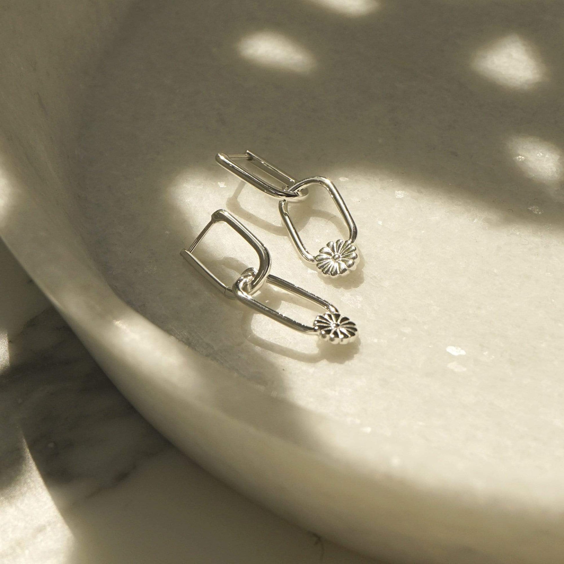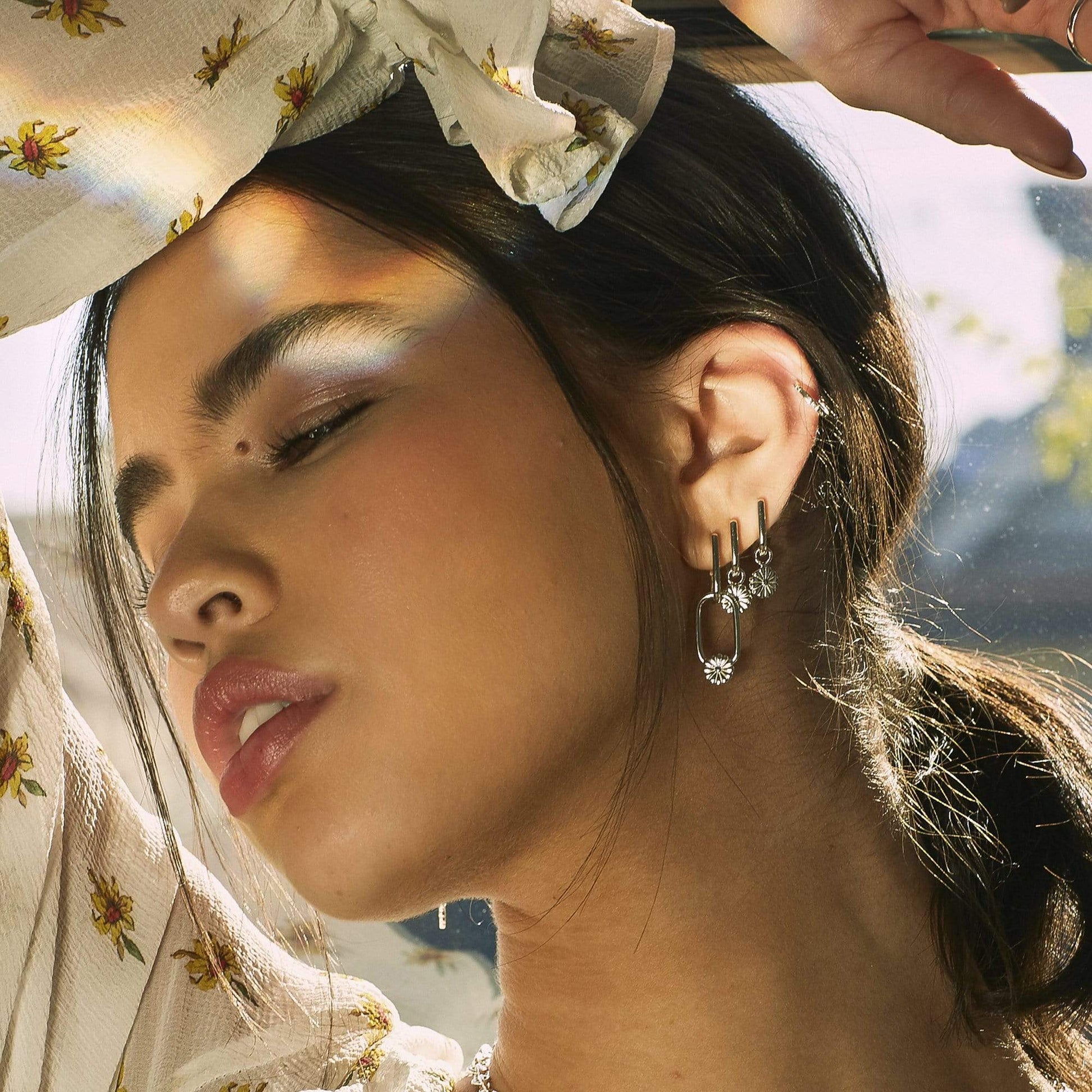 Dimensions: Hoop External Diameter: 11mm Hoop | Hoop Internal Diameter: 7.5mm | Hoop Drop: 13mm | Charm Drop: 21.5 x 10.6 | Daisy Charm: 7.6 x 1.5 mm