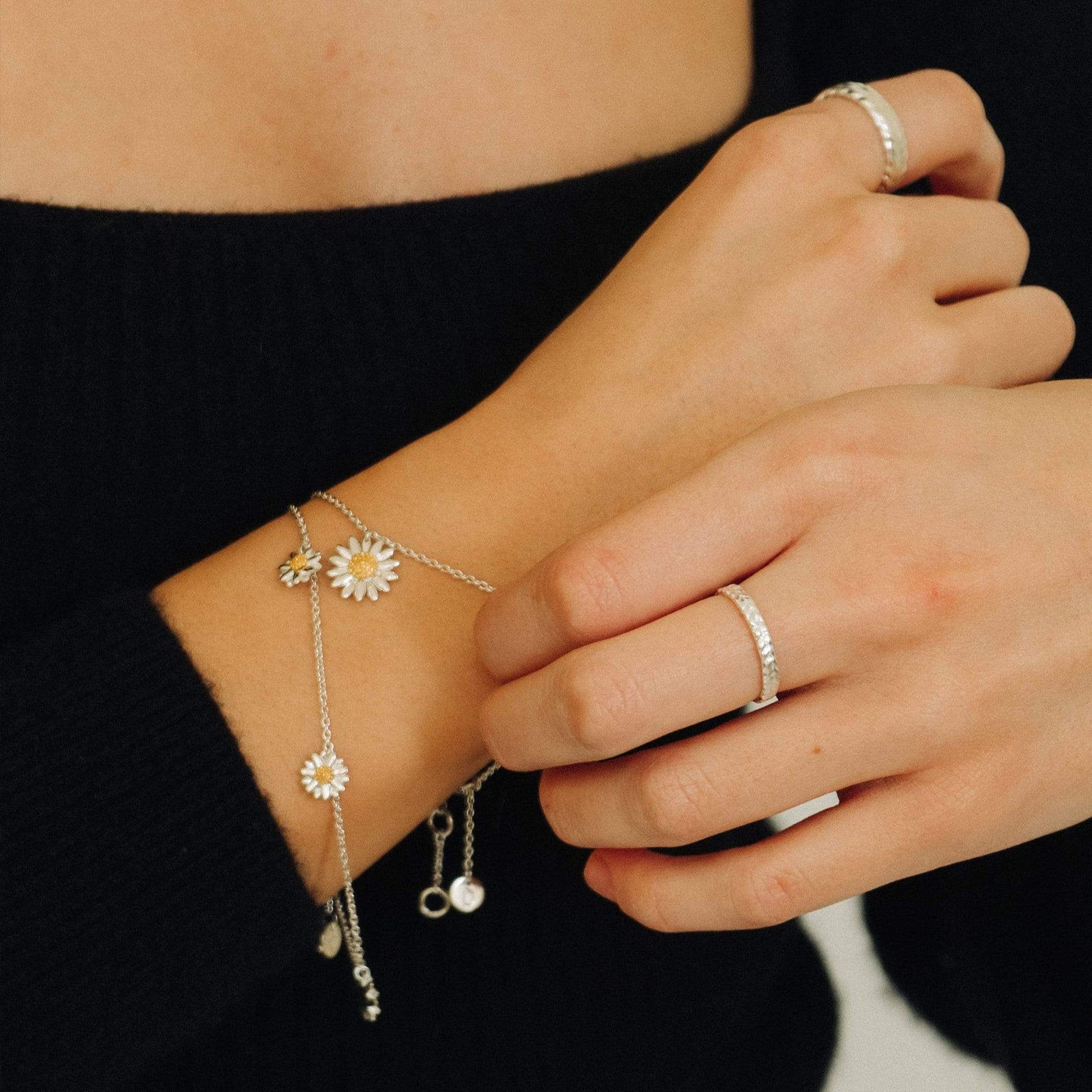 The Daisy Drop Bracelet is inspired by the charming English flower. The simple and carefree nature of the daisy is depicted in our namesake collection, making it a timeless favourite.