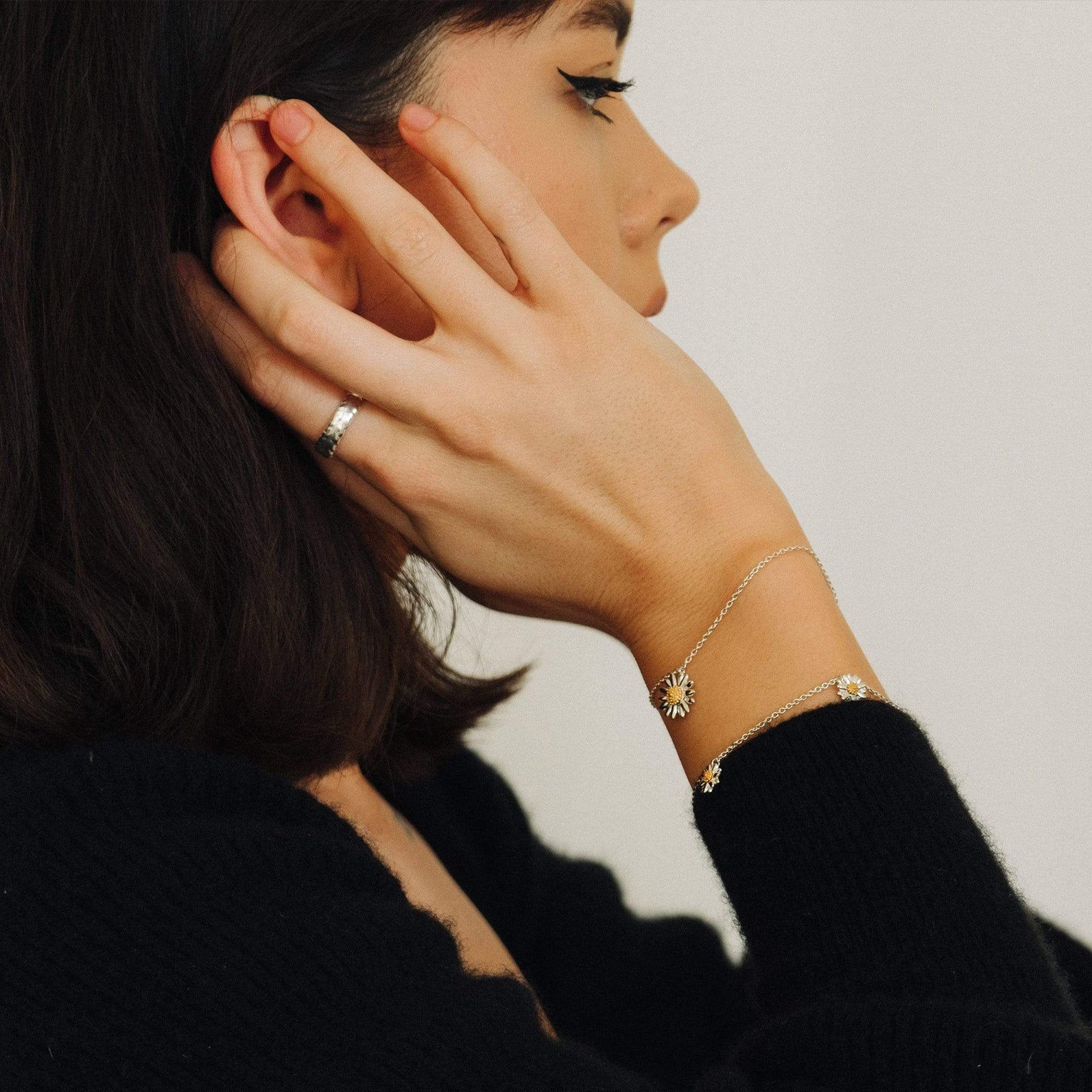 Made of 925 Sterling Silver and 18ct Gold Plate, the Daisy Drop Bracelet is the perfect addition to any outfit and looks beautiful when layered with other pieces from the classic Daisy collection.
