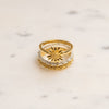 Minimal styling, maximum compliments. This classic daisy ring is a jewellery box staple, stack it high or wear alone for a simple understated look.