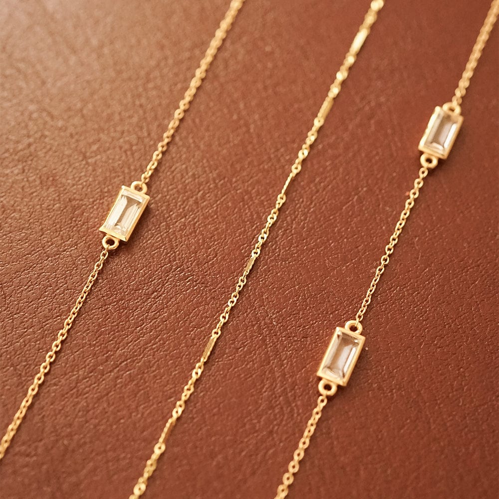 Meet the white sapphire bracelet designed to make you feel special whatever the day has in store. Featuring a baguette cut white sapphire on a 14ct solid gold chain, fine-ally that extra shine your jewellery style's been waiting for.