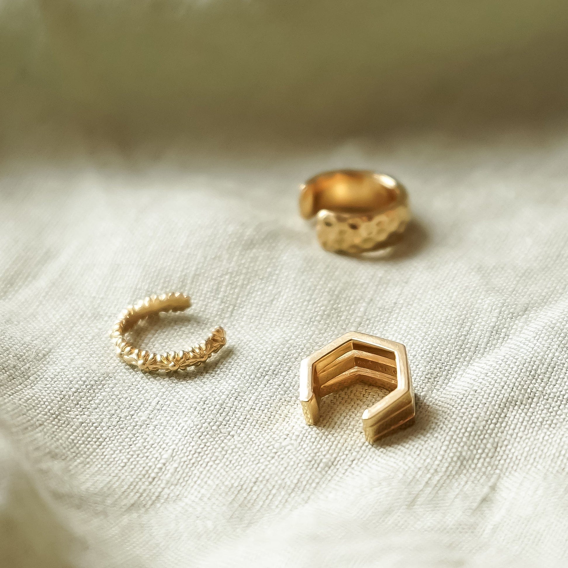 Geometric Three-Band Ear Cuff 18ct Gold Plate
