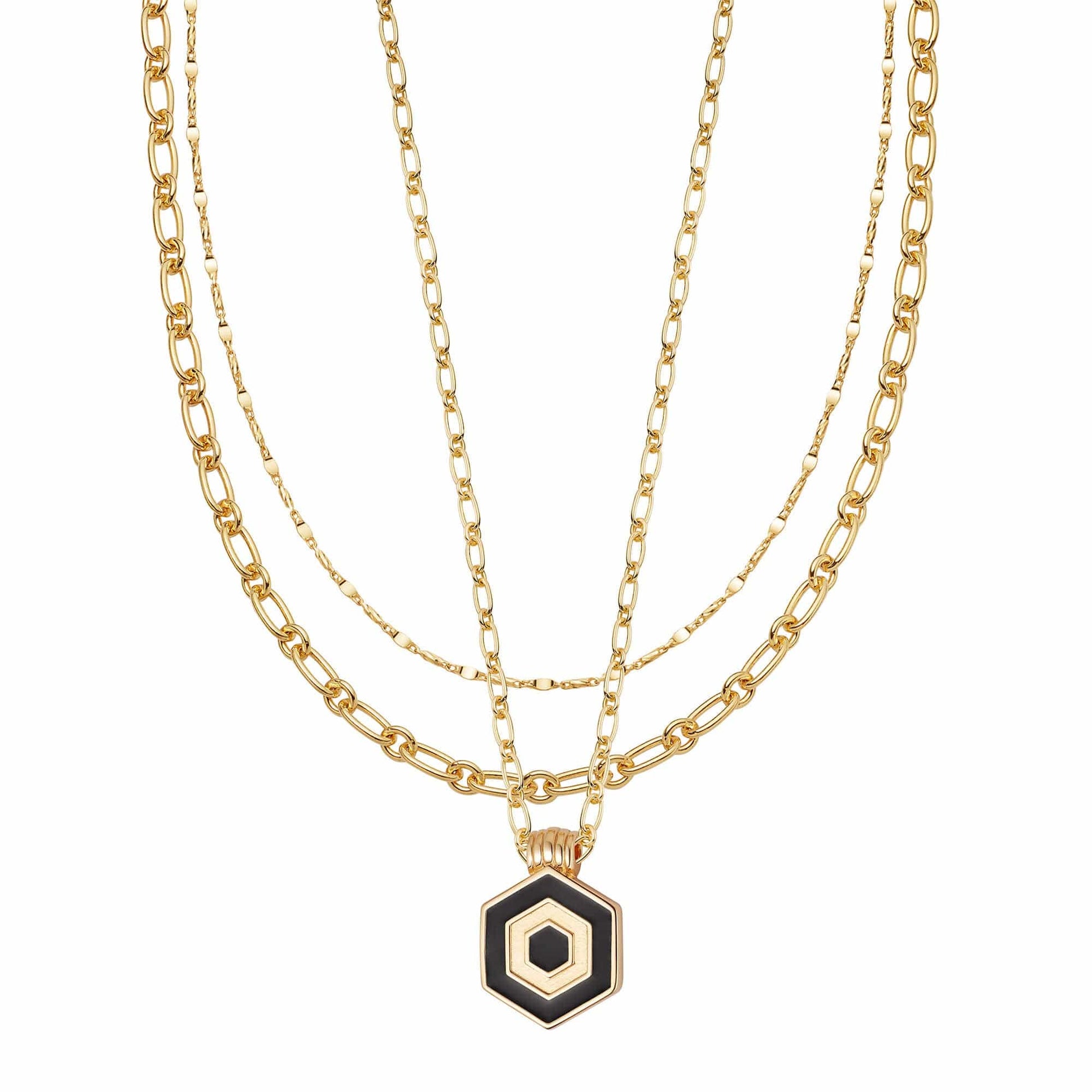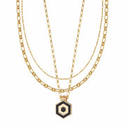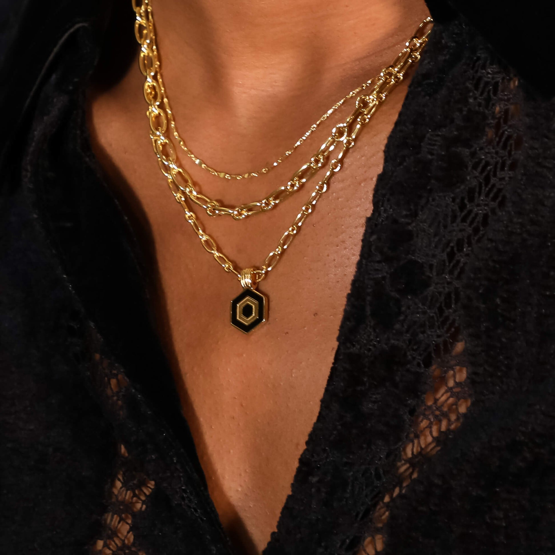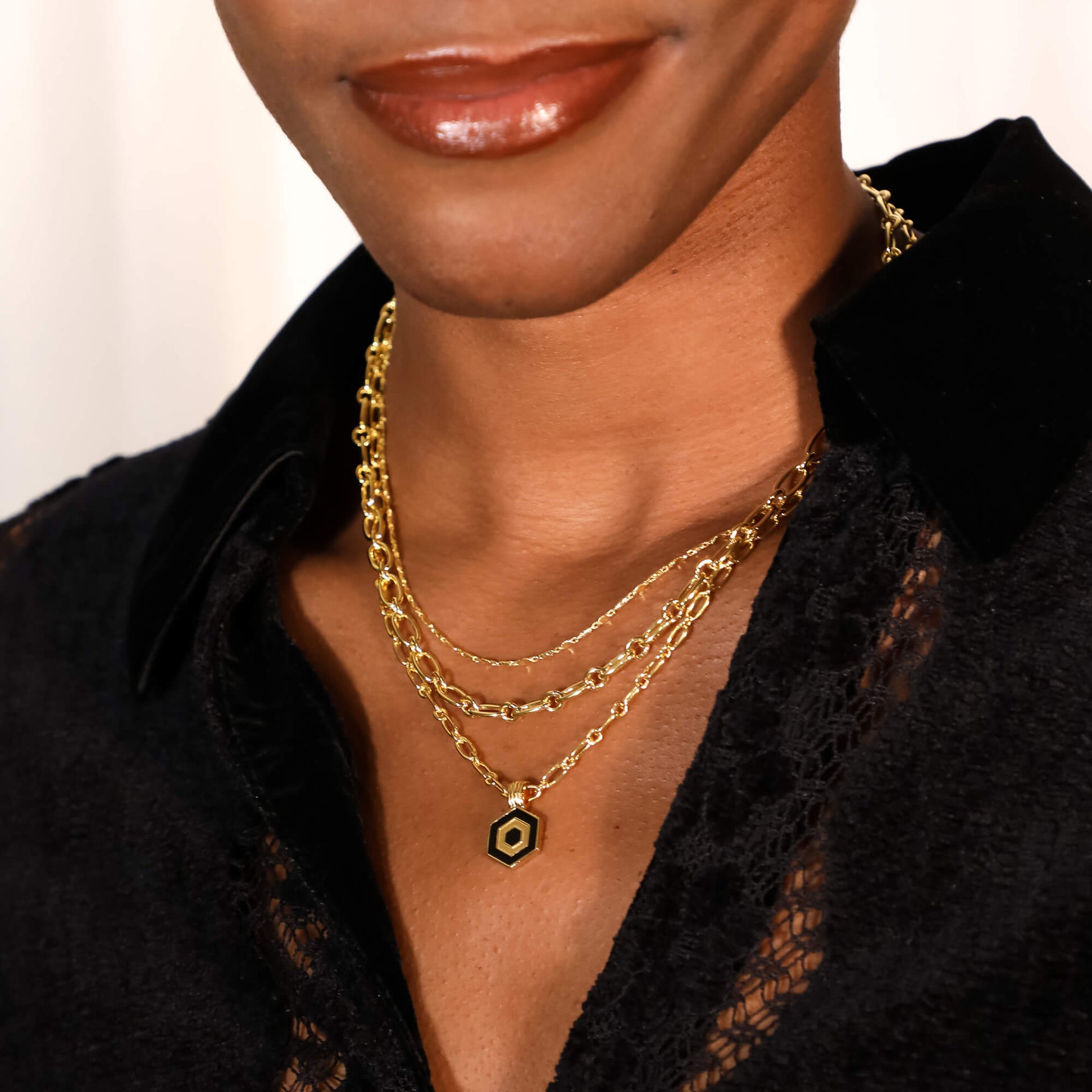 Sometimes you've just got to spoil yourself. And what better way than with new jewellery? The Hexagon Palm Necklace Layering Set features two of our all-time favourites, the Stacked Linked Chain Necklace and Isla Tidal Twist Chain Necklace, along with our latest love, the Hexagon Palm Necklace. Handcrafted in 18ct gold plate on 100% recycled sterling silver, this trio ticks all the boxes: chunky chains, subtle sparkle, and a statement pendant. It's layering, perfected.