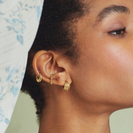 Designed for those who like to stand out from the crowd, the Iconic Huggie Earring. All unique in their own way, all handcrafted in 18ct gold plate. Icons only need apply.
