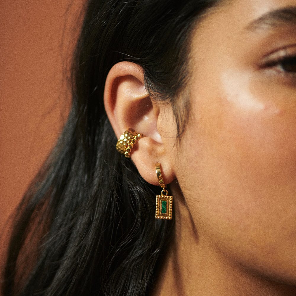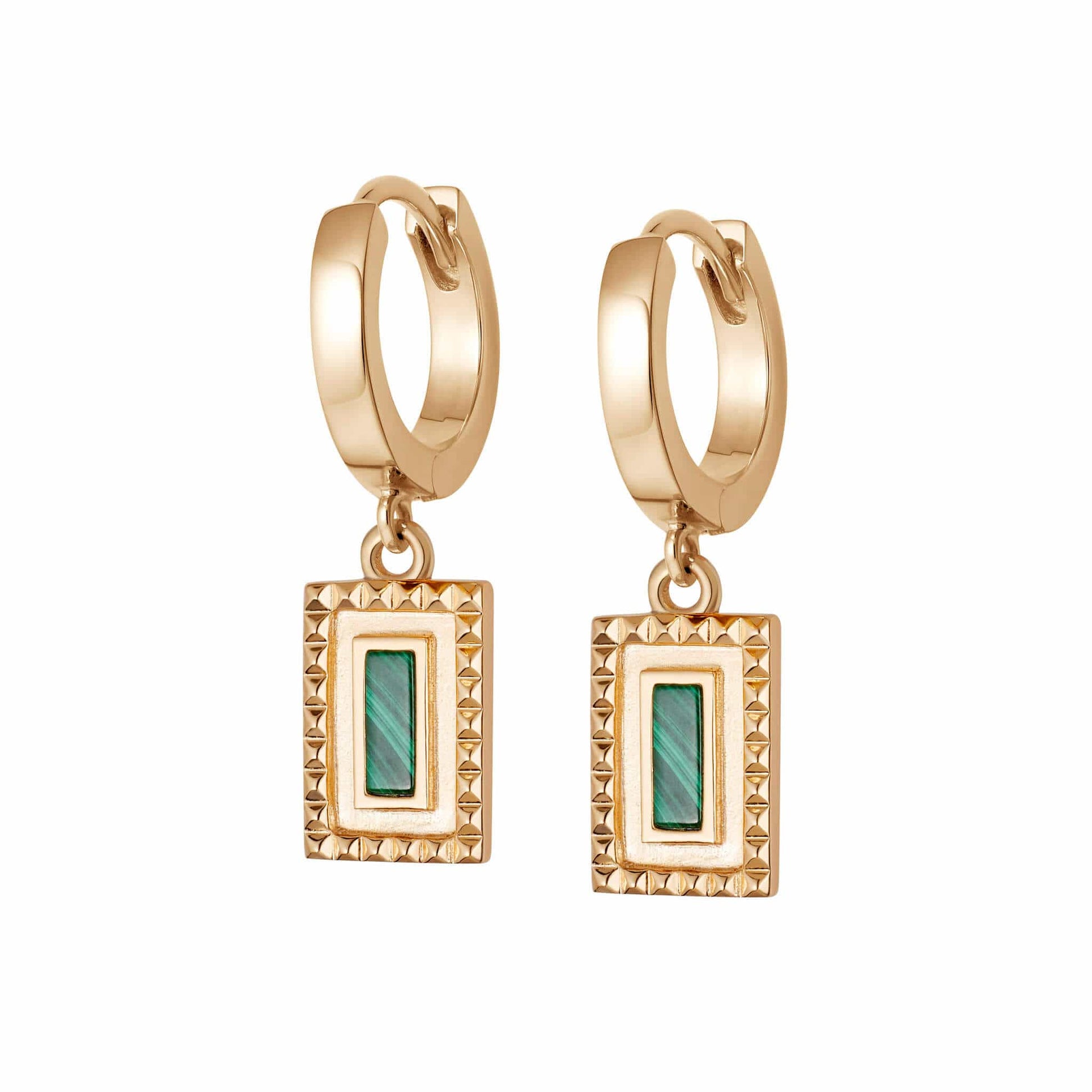 Blending art deco details and contemporary lines, these eye catching drops will be a fresh addition to your stack. Wear solo for a more refined elegant look or layer with the rest of the malachite collection for that all-out 20's-inspired moment.