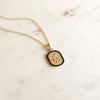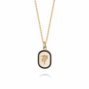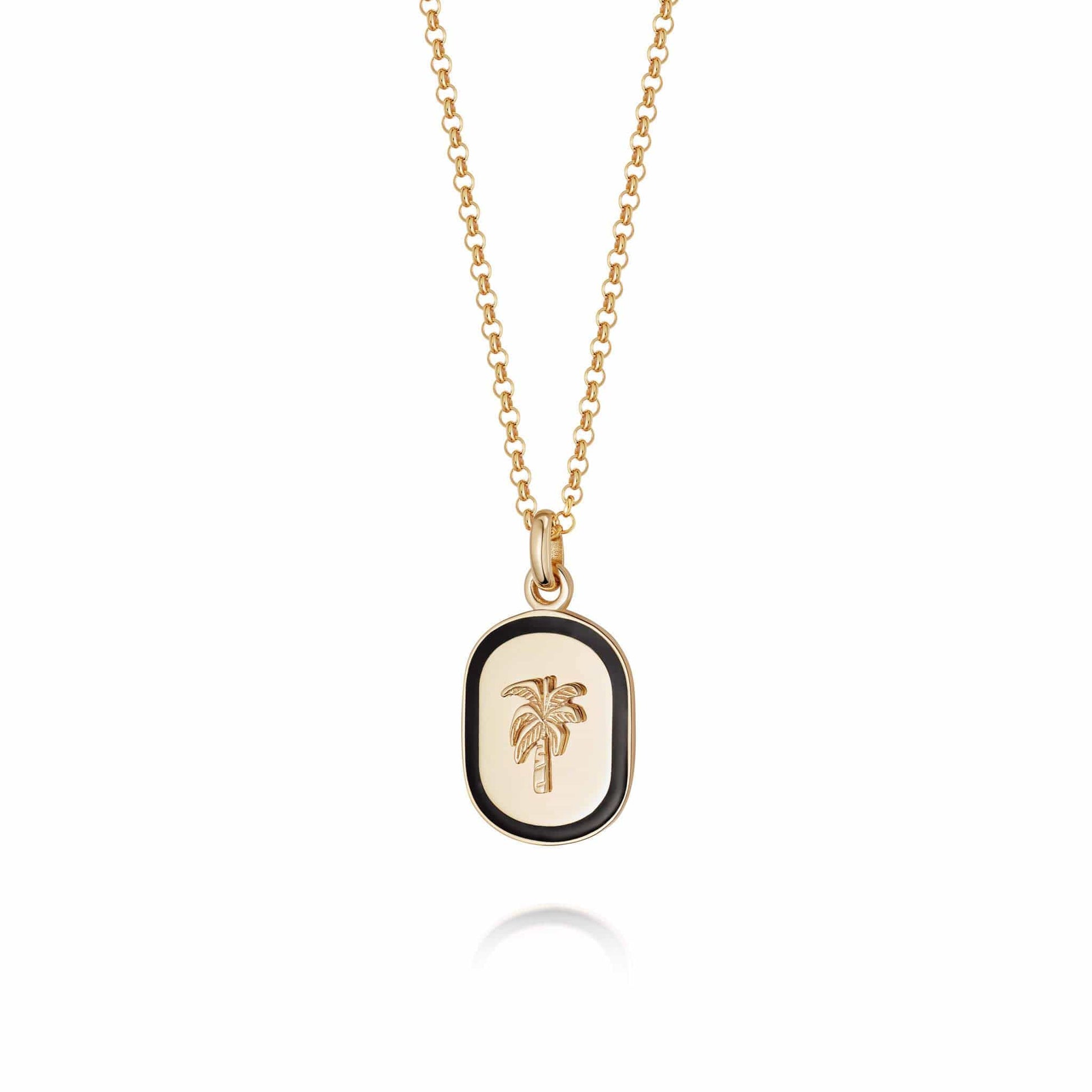 Talk about making a statement, the Palm Enamel Necklace catches the eye and holds it. Crafted in 18ct gold plate and features an intricately engraved palm with a black enamel border, this must-have pendant adds a little something different to your necklace stack.