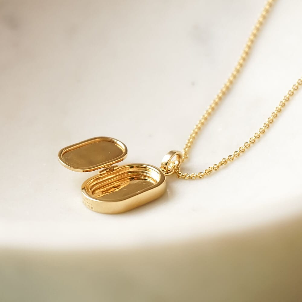 Add a touch of vintage cool to your everyday style with the Palm Engraved Oval Locket. The ultimate statement piece to layer with stacks of chains and your favourite tee. Crafted in 100% recycled sterling silver with 18ct plate, featuring an engraved palm leaf design with a hidden opening to keep your memories close. This is the must-have necklace you need to lock down. Check out our simple ‘How To’ guide to add a photo to your Locket.