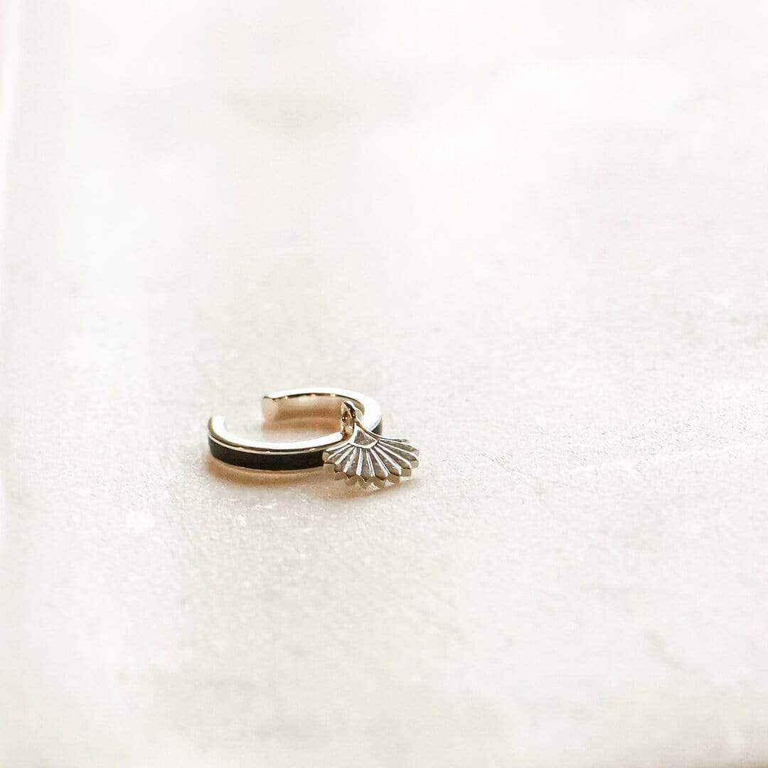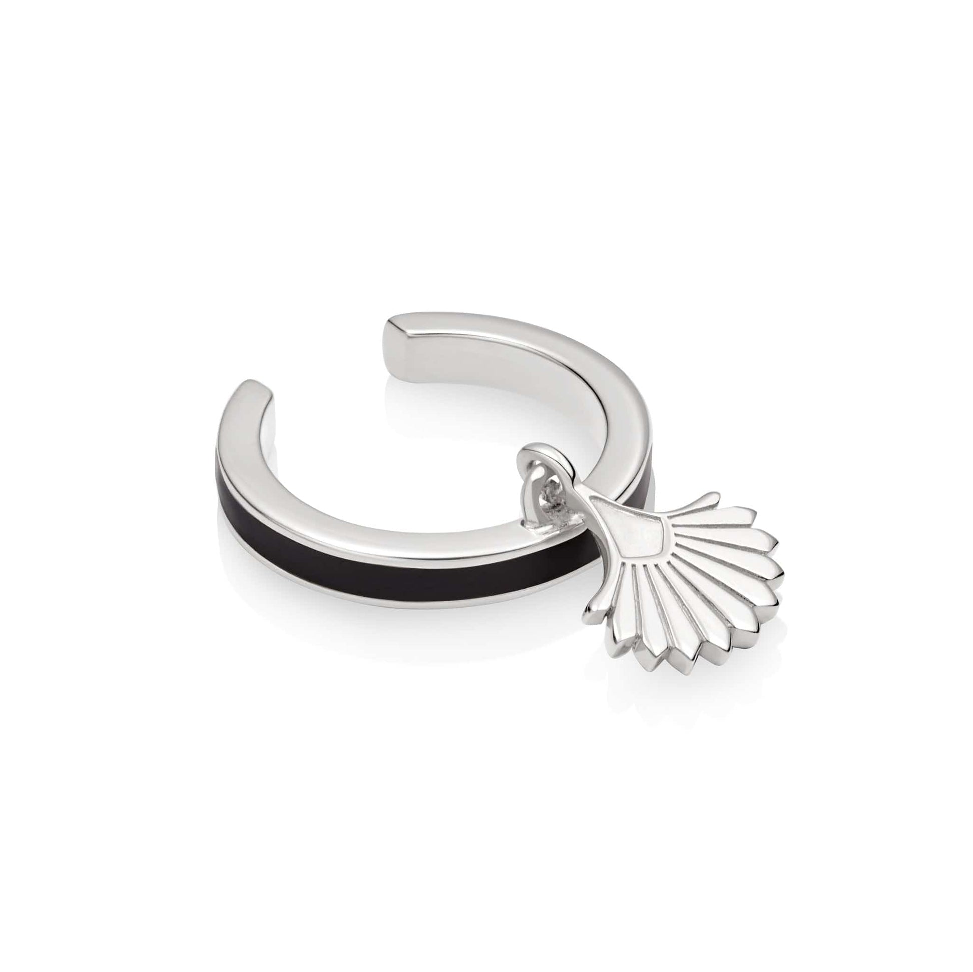 Cheat your way to more piercings with the Palm Fan Enamel Ear Cuff. Featuring a fan palm charm on a 100% recycled sterling silver band, set with a black enamel centre. Stack with a drop earring and a statement stud for the perfect ear stack.