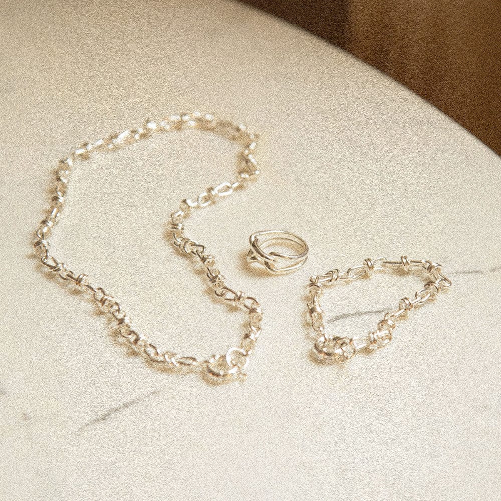 We've done the hard work for you with this chunky chain set. Effortless everyday styling all rolled into one, featuring the Knot Chain Necklace, Bracelet and Large Knot Ring.