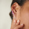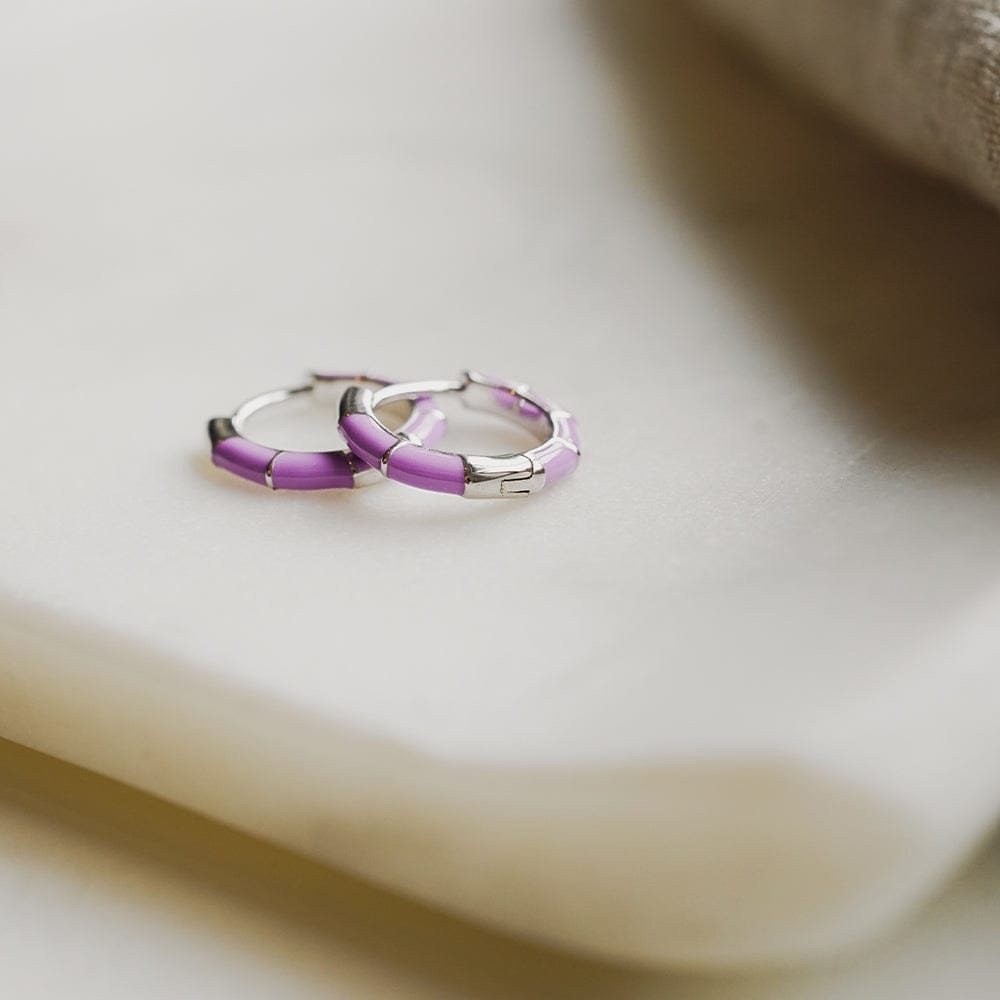 Featuring a distinctive purple enamel stripe coated on a 100% recycled sterling silver hoop, these mood boosting huggies add a colourful twist to your ear stack.