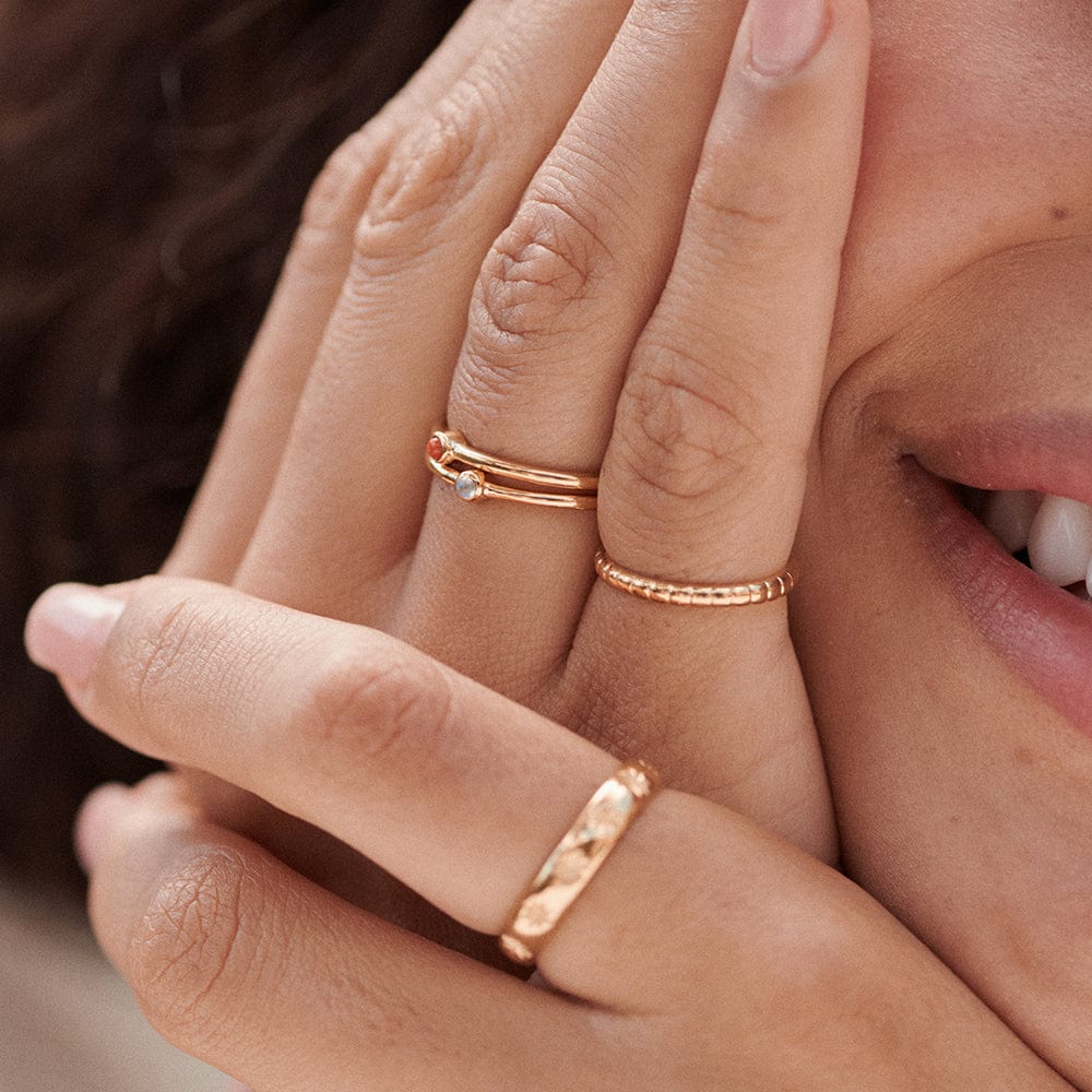 For period of changes and transformation look to the healing powers of red coral to carry you through. This beautifully bright stone is set on a fine band. Stack with our other healing stone rings for a colourful everyday stack you'll wear on repeat.