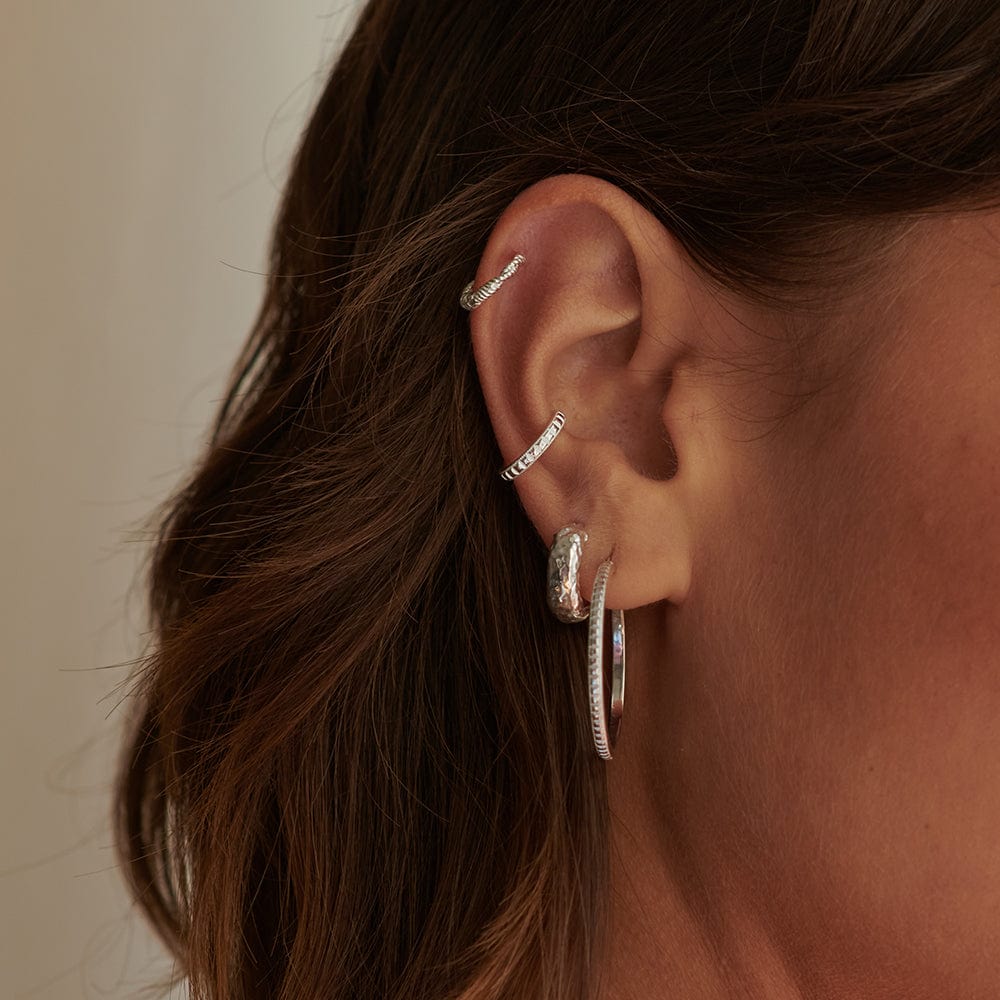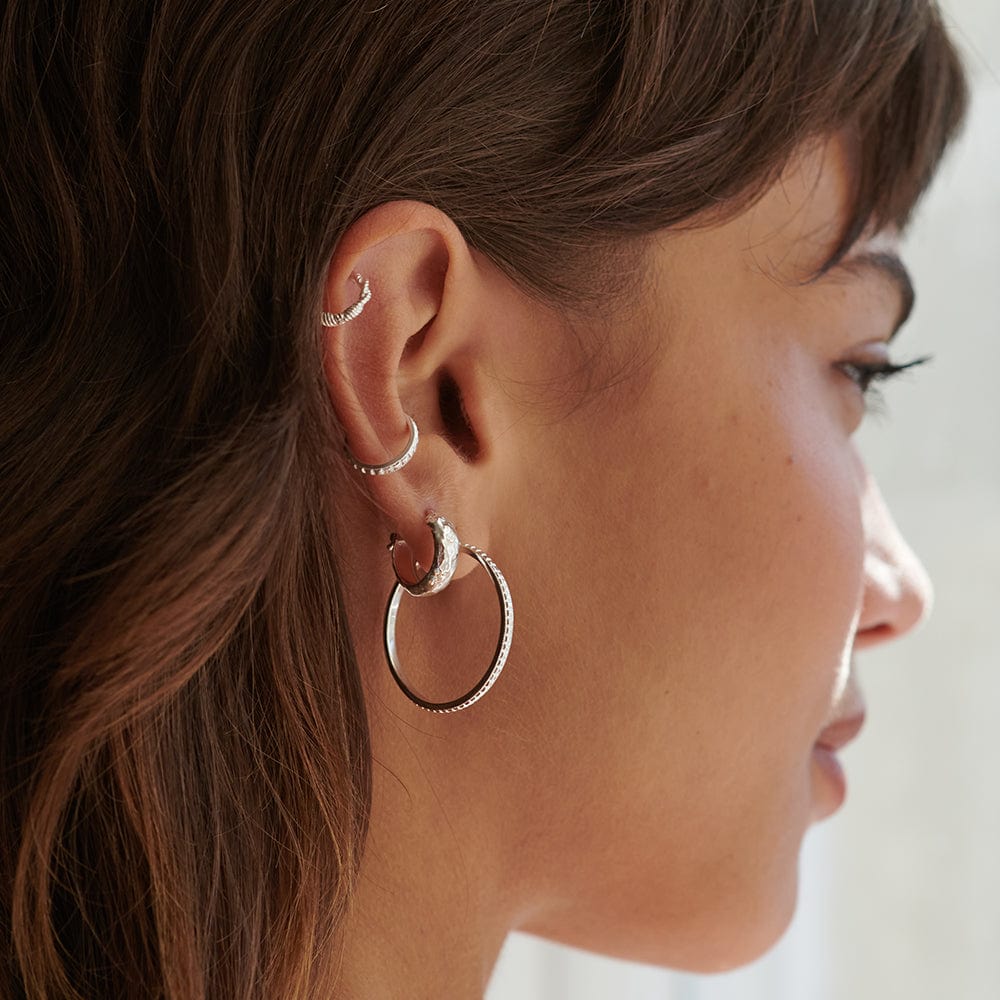 These hoops feature a braided design with a practical hinge closure. With their elegant look and textured structure, they're the perfect earring to add some edge to your stack.