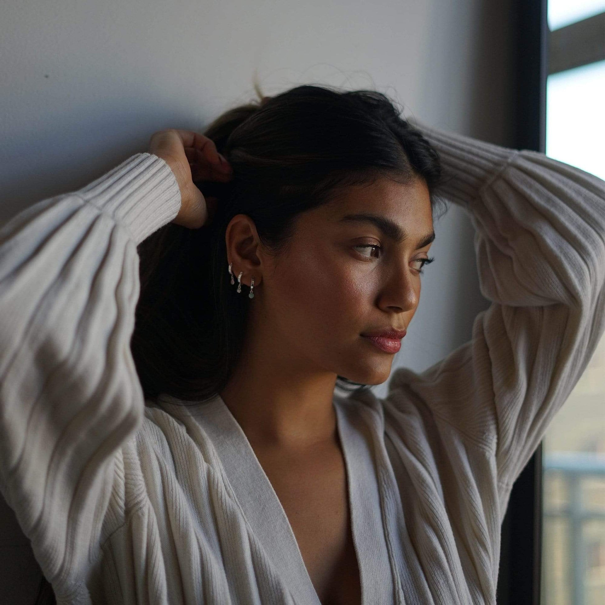 All you need is love. Attract good loving vibes, whether it’s for yourself or to share with another, with our Rose Quartz Healing Huggies. A delicate piece of rose quartz crystal set on simple sterling silver charms, said to carry a soft feminine energy of compassion and tenderness.