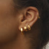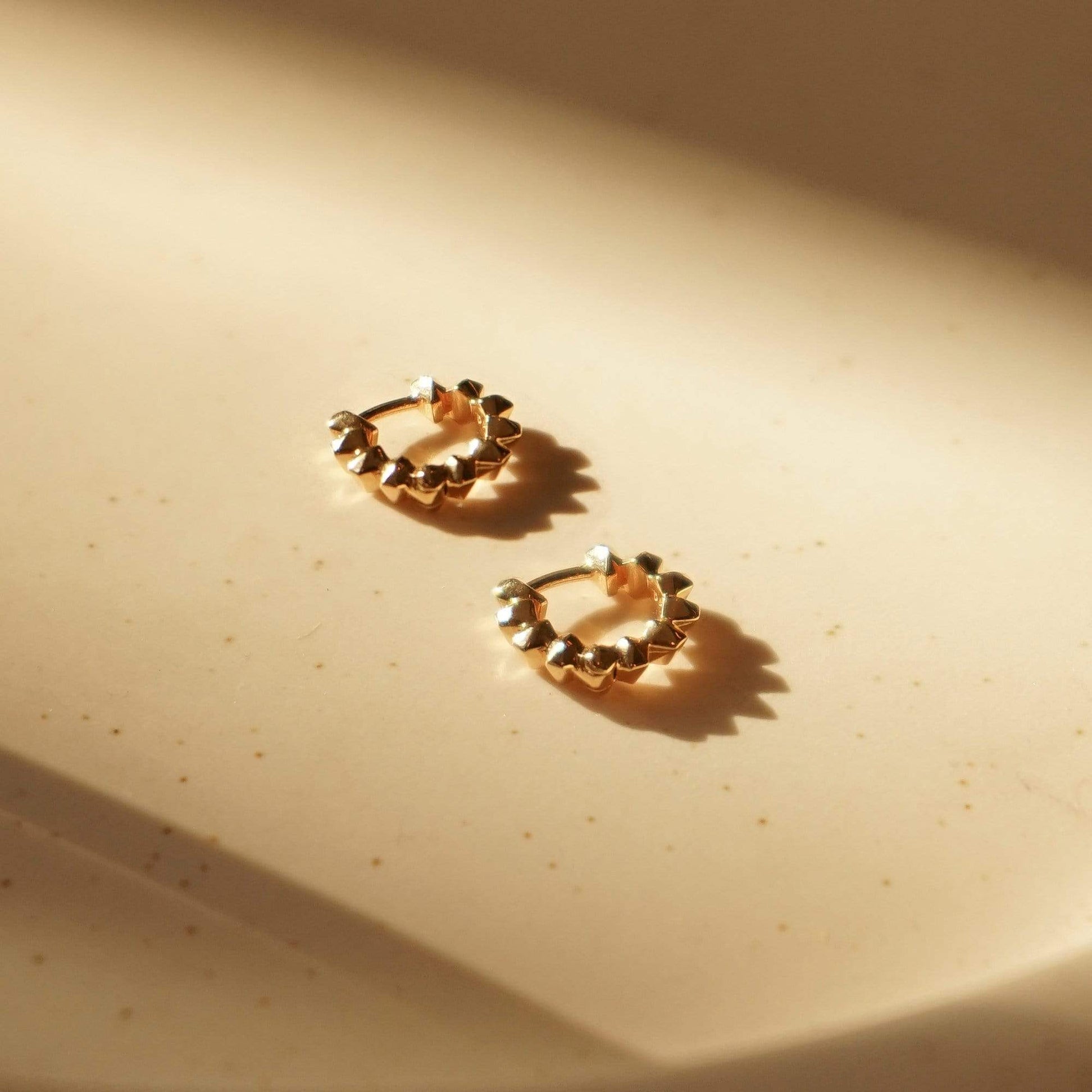 Make an impact with our 18ct gold plate Studded Huggie Hoop Earrings. Featuring organic shapes and textures, these must-have huggies give an instant edge to your ear stack. Sitting close to the ear these beauties look great in the upper lobe or Helix piercings.
