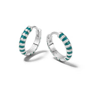 Teal Fine Stripe Huggie Hoop Earrings Sterling Silver
