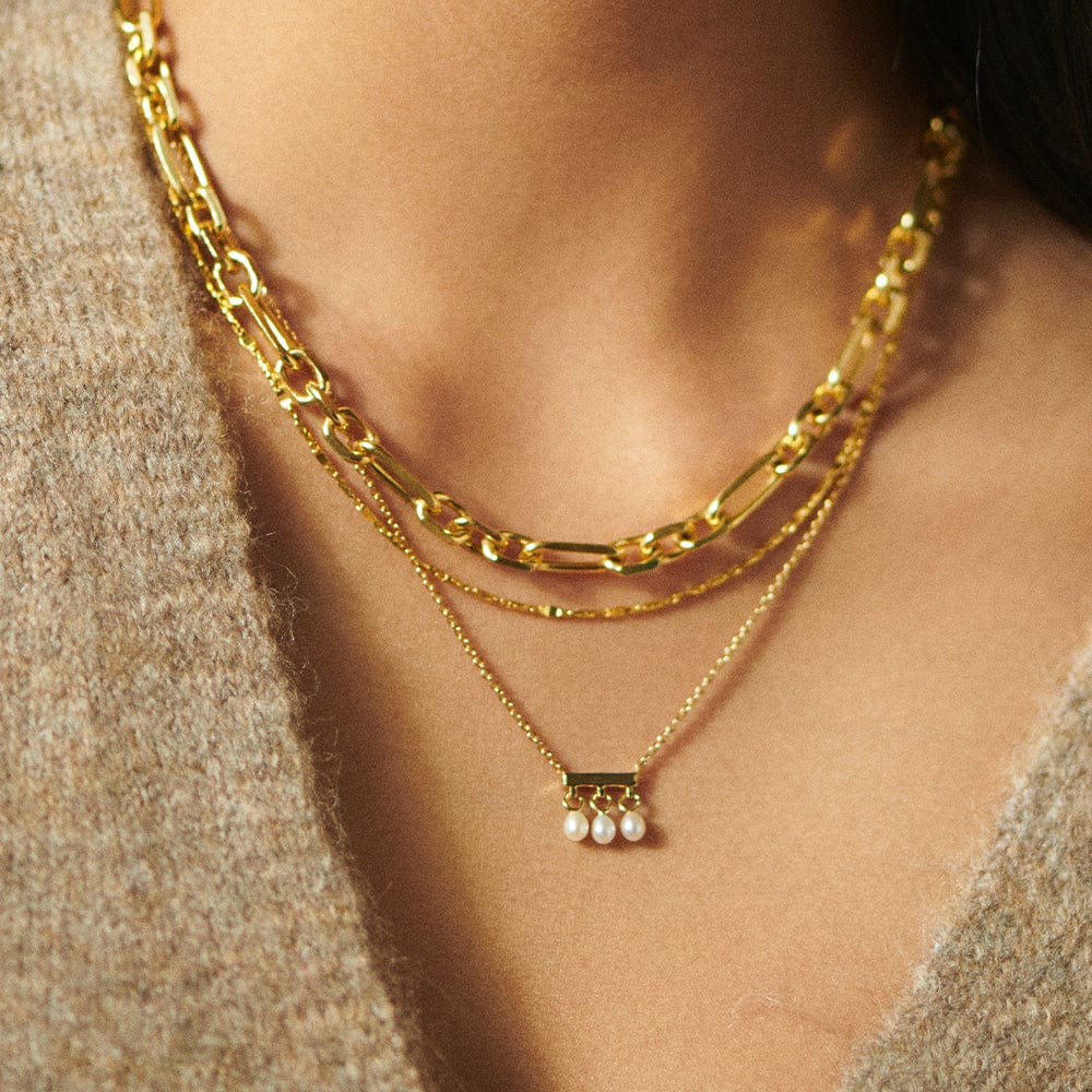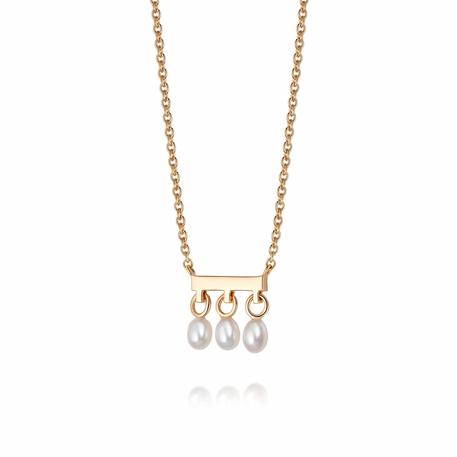 Featuring a trio of freshwater seed pearls hung on an adjustable 18ct gold plate chain, this understated and unique pendant will quickly become an everyday staple. Pair with contrasting chunky chains for a stack that will turn heads.