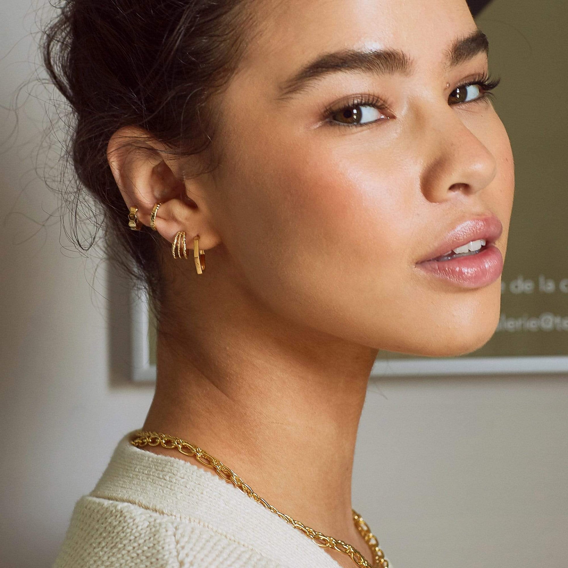 Hoops are a jewellery box essential, the ultimate autumn staple. Think iconic 18ct gold plate hoops in every shape and size, from subtle huggies to statement pieces made to shine. Mix, match, and layer your way to the perfect sun-ready ear stack.