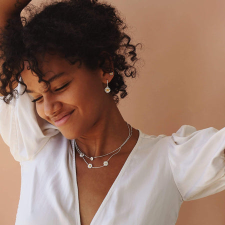 These simple daisy studs are a styling staple, pair with different size hoops for a curated ear stack or wear alone for a subtle understated look. Made from 100% recycled sterling silver these go-to earrings are ready to match any outfit, any time.