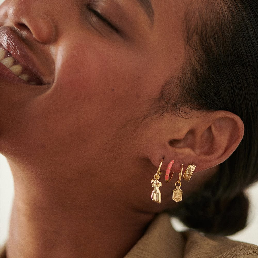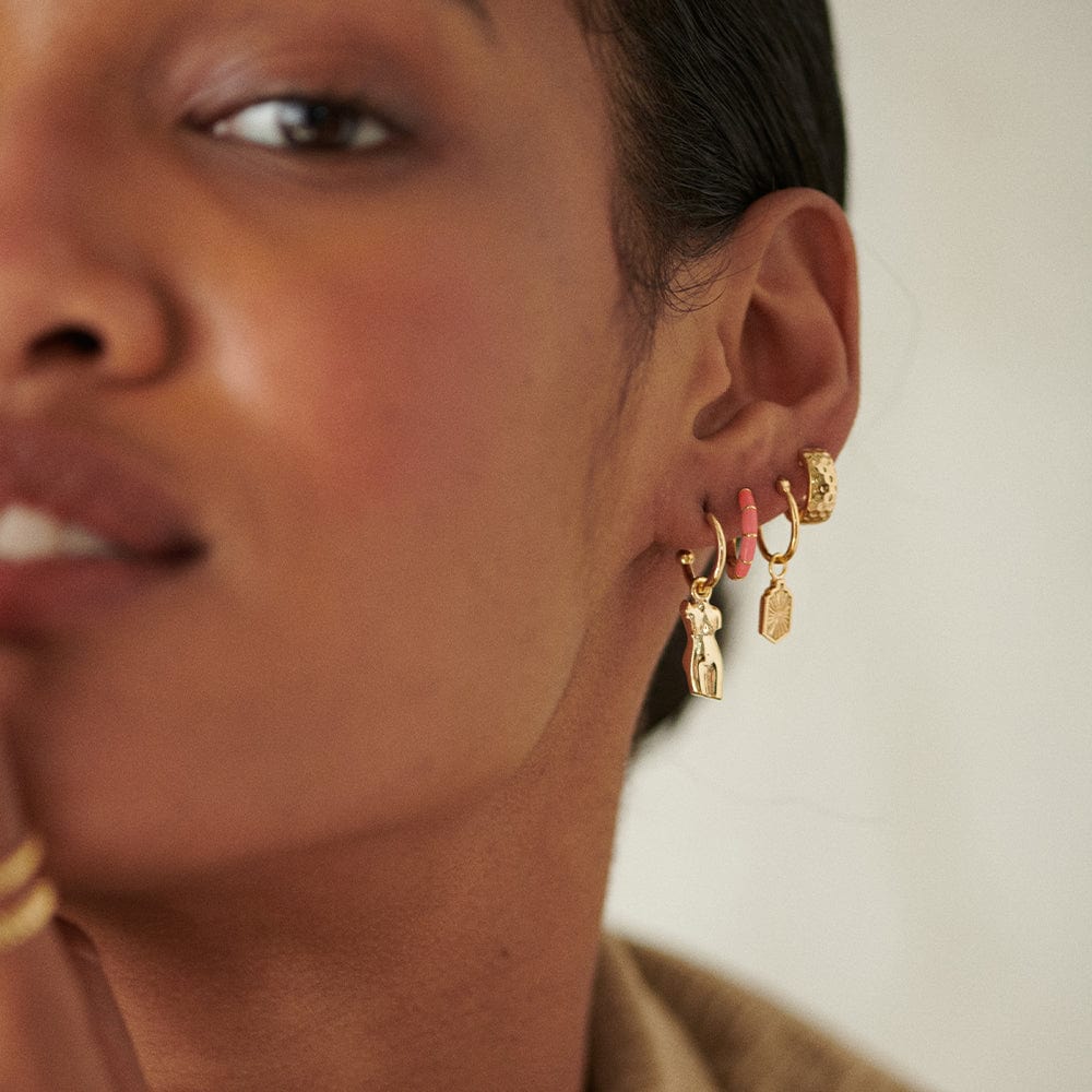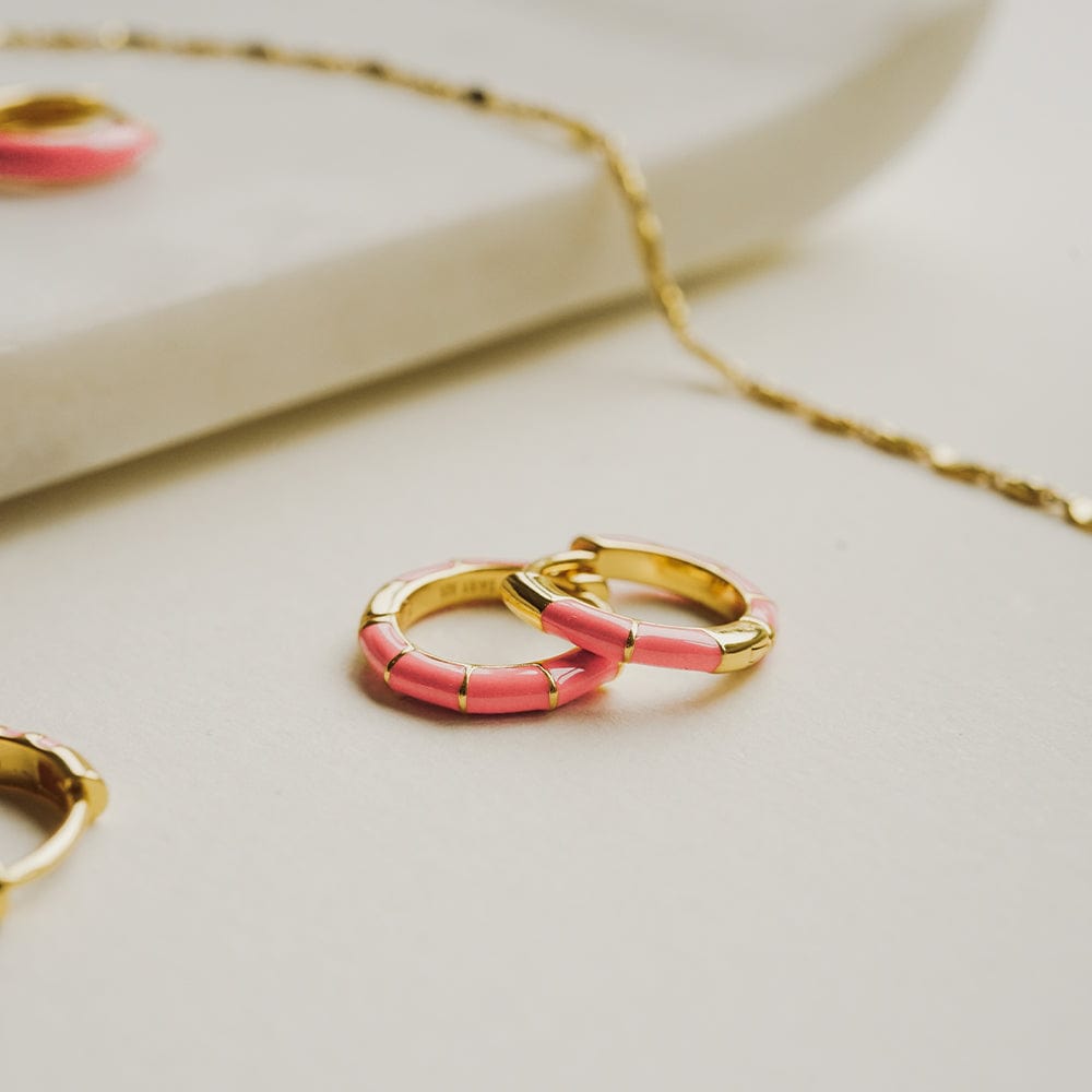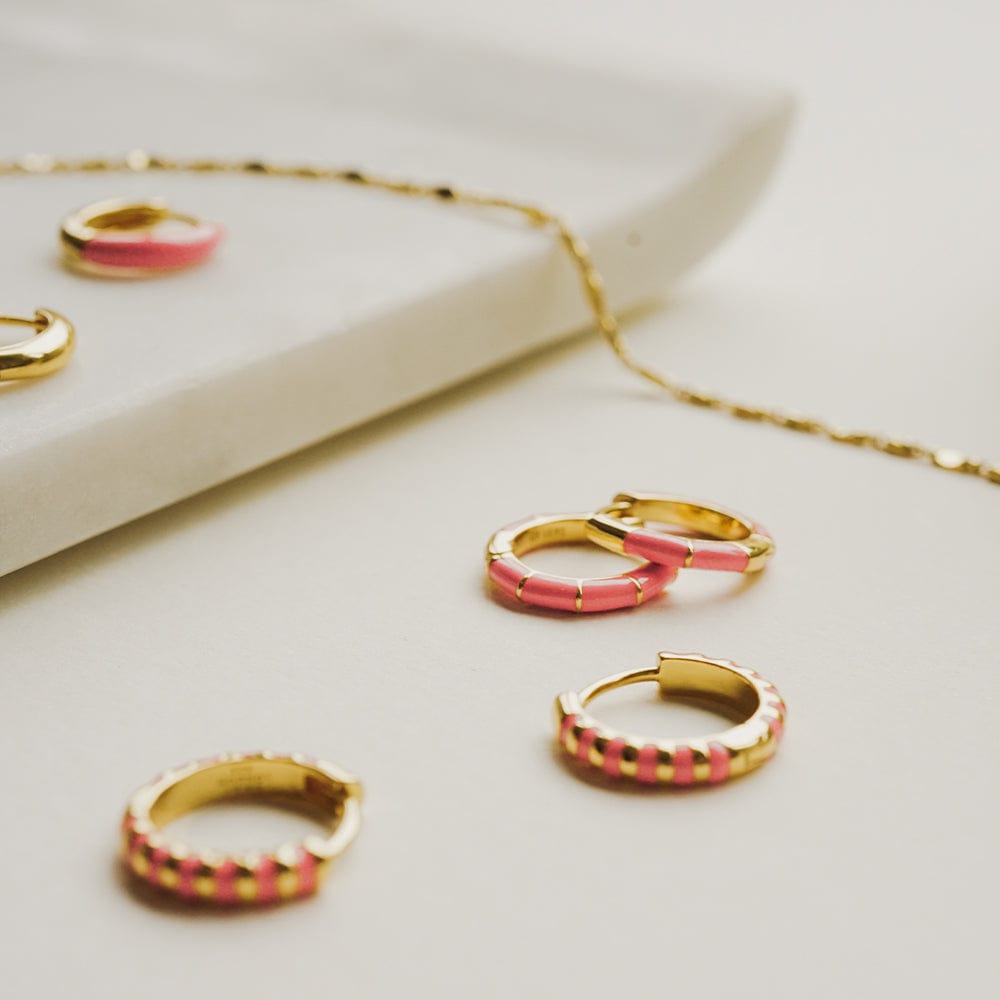 Coral Stripe Huggie Hoop Earrings 18ct Gold Plate