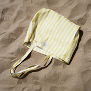 With sunshine-yellow and white stripes, soft cotton feel, this limited-edition tote is made for market strolls, city days, and beach escapes.