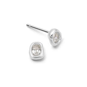 Sculpted organic studs in recycled sterling silver with white sapphire detail. Minimal, refined, and instinctively wearable.