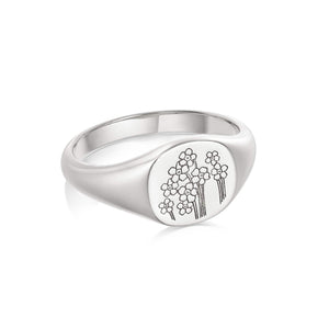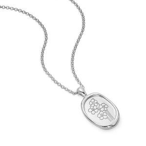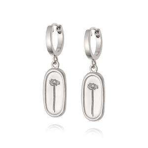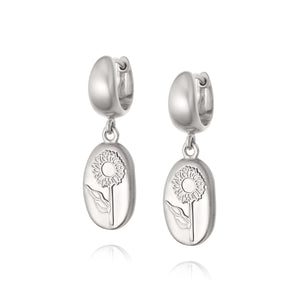 A symbol of memories, these earrings are a forever keepsake. Made from 100% recycled sterling silver with a subtle matte finish, the Forget Me Not Drop Earrings feature an oval pendant with a set of etched flowers. Our unique take on a traditional wax seal, hung from chunky huggie hoop.
