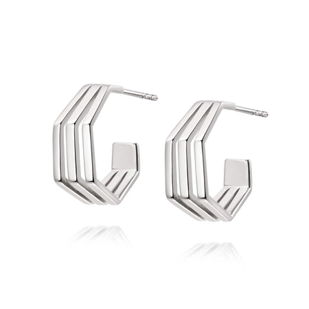 Crafted in 100% recycled sterling silver this larger huggie hoop always catches the light. With a smooth high shine exterior and cut out detailing in the centre the Goldie Huggie Hoop Earrings are bold and beautiful. Wear solo for instant impact or contrast with other hoop shapes for a standout stack.