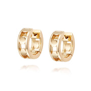 Effortless and vintage-inspired. The Chunky Huggie Hoop Earrings are crafted in 18ct gold plate, fusing heirloom details with modern shapes. A wider set huggie this beauty looks great worn solo in your first piercing or stacked in upper lobe piercings.