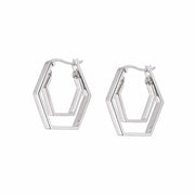 The Double Hexagon Hoops are made in 100% recycled sterling silver featuring double hexagonal hoops. These stunners create extra movement that will be sure to turn heads wherever you go. Make a solo statement or layer up with contrasting shapes for a powerful ear look.