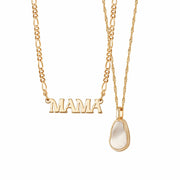 Mother of Pearl & Mama Necklace Layering Set 18ct Gold Plate
